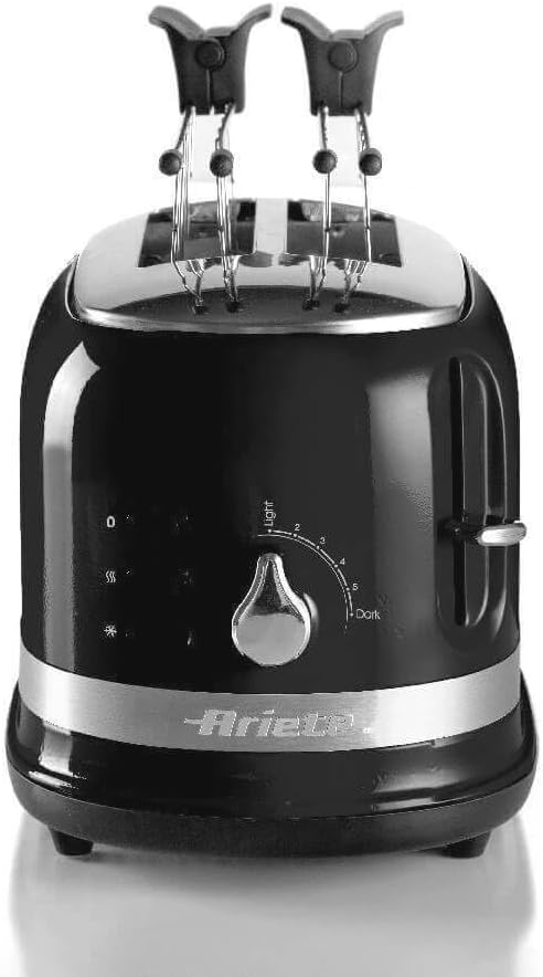 Ariete 149/02 Moderner 2-Scheiben-Toaster mit Zange, automatischer Auswurf, Krümelschublade, Auftau- und Aufwärmfunktion, 6 Bräunungsstufen, 800 W Schwarz