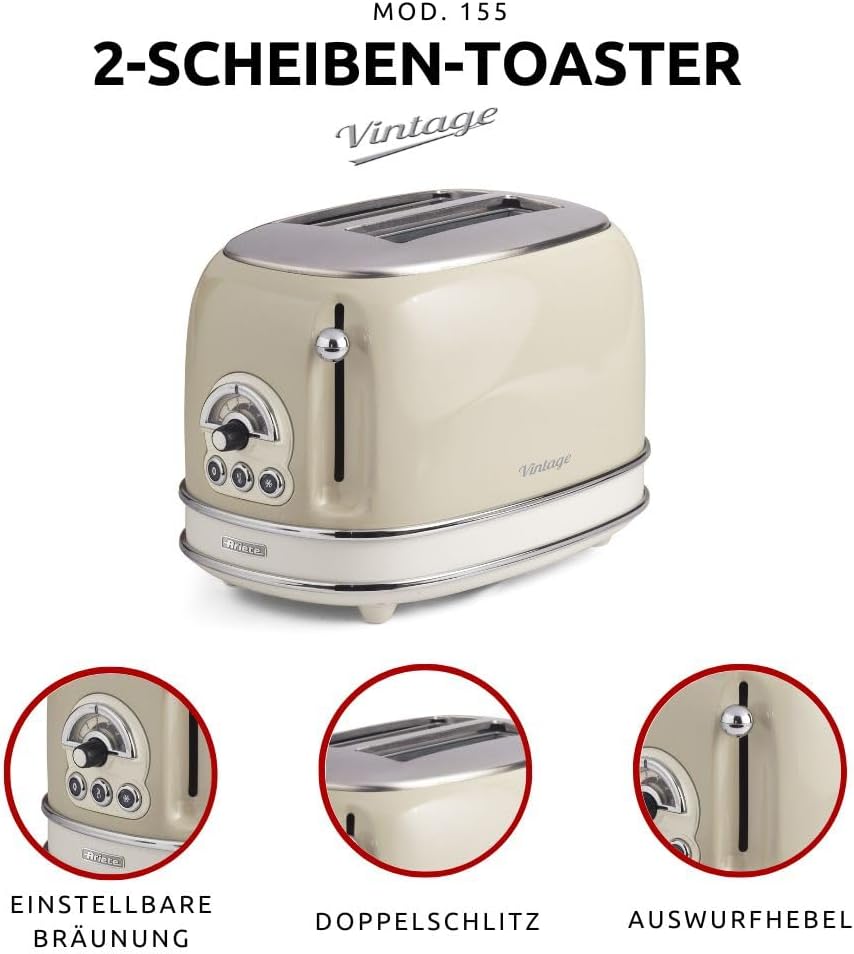 Ariete Retro Toaster Vintage 155, 2-Scheiben-Toaster, Retro Toaster mit 6 Toaststufen creme - B Ware