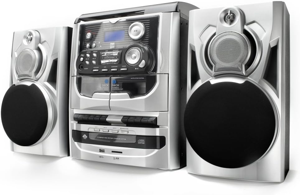 Dual MP 301 Mini-Stereo-System (100W, 3-fach CD-Wechsler, Doppel-Kassettendeck, Plattenspieler, MP3, RDS-Radio, 2-Wege Lautsprecher, USB)