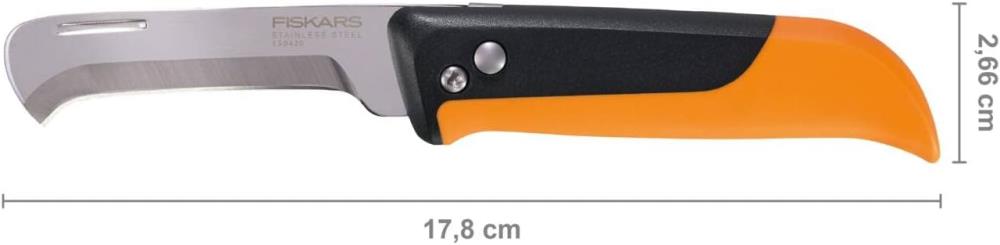 Lieferumfang: 1x Fiskars Klappbares Obst- und Gemüsemesser, Gesamtlänge: 17,8 cm, Klingenlänge: 7,7 cm, Gewicht: 59 g, Rostfreier Stahl/Kunststoff, Farbe: Schwarz/Orange, X-series, K80, 1062819