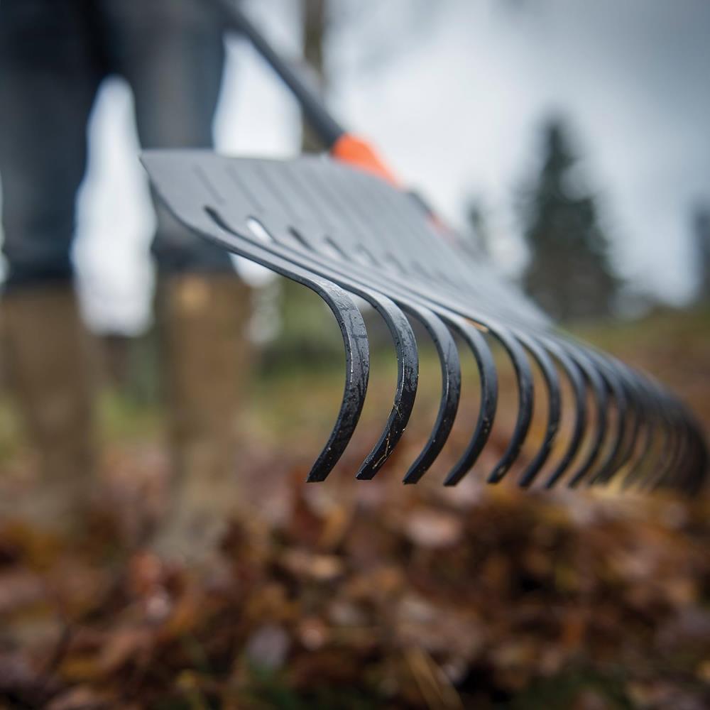 - Effizientes und einfaches Zusammenharken in Zugrichtung dank 25 stabiler und flexibler Zinken aus langlebigem Kunststoff und einer Arbeitsbreite von 52 cm