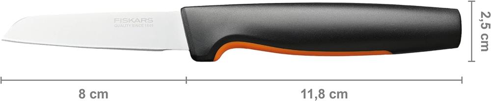 - Lieferumfang: 1x Fiskars Functional Form Schälmesser, Klingenlänge: 8 cm, Gesamtlänge: 20 cm, Gewicht: 41 Gramm, Material: Japanischer Edelstahl/Kunststoff, Farbe: Silber/Schwarz/Orange, 1057544