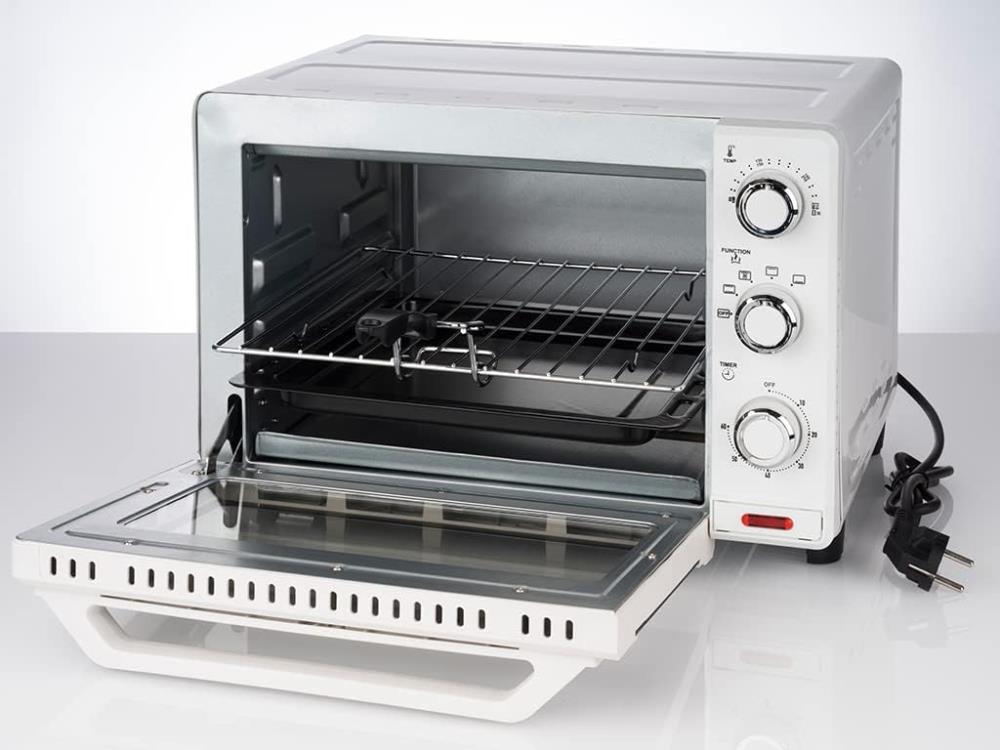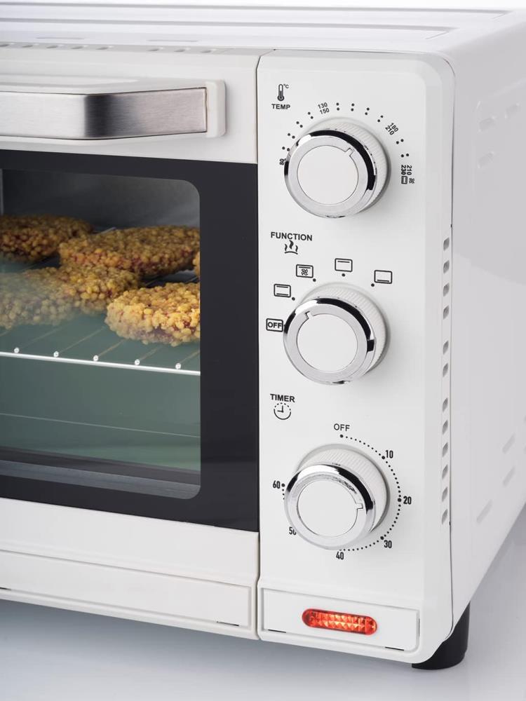 LEISTUNG – Bei 1500 Watt und einstellbarer Temperatur zwischen 100 und 230°C gart der Mini-Backofen mit 4 Edelstahl-Heizelementen Ihre Speisen. Mit 24 Liter Fassungsvermögen, 3 Einschubebenen und einstellbarem Timer bis zu 60 Minuten wird die Zubereitung zum Kinderspiel.
