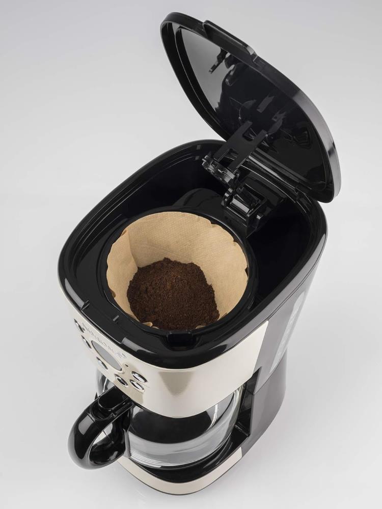 - Mit Glaskanne für bis zu 12 Tassen (1,5 Liter)
