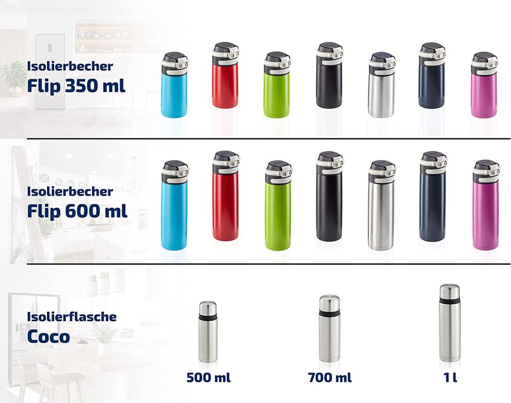 - Edles Design - die Isolierflasche Coco Edelstahl besticht mit ihrer hochwertigen Optik im Edelstahl-Design. Sie ist in drei verschiedenen Größen erhältlich
