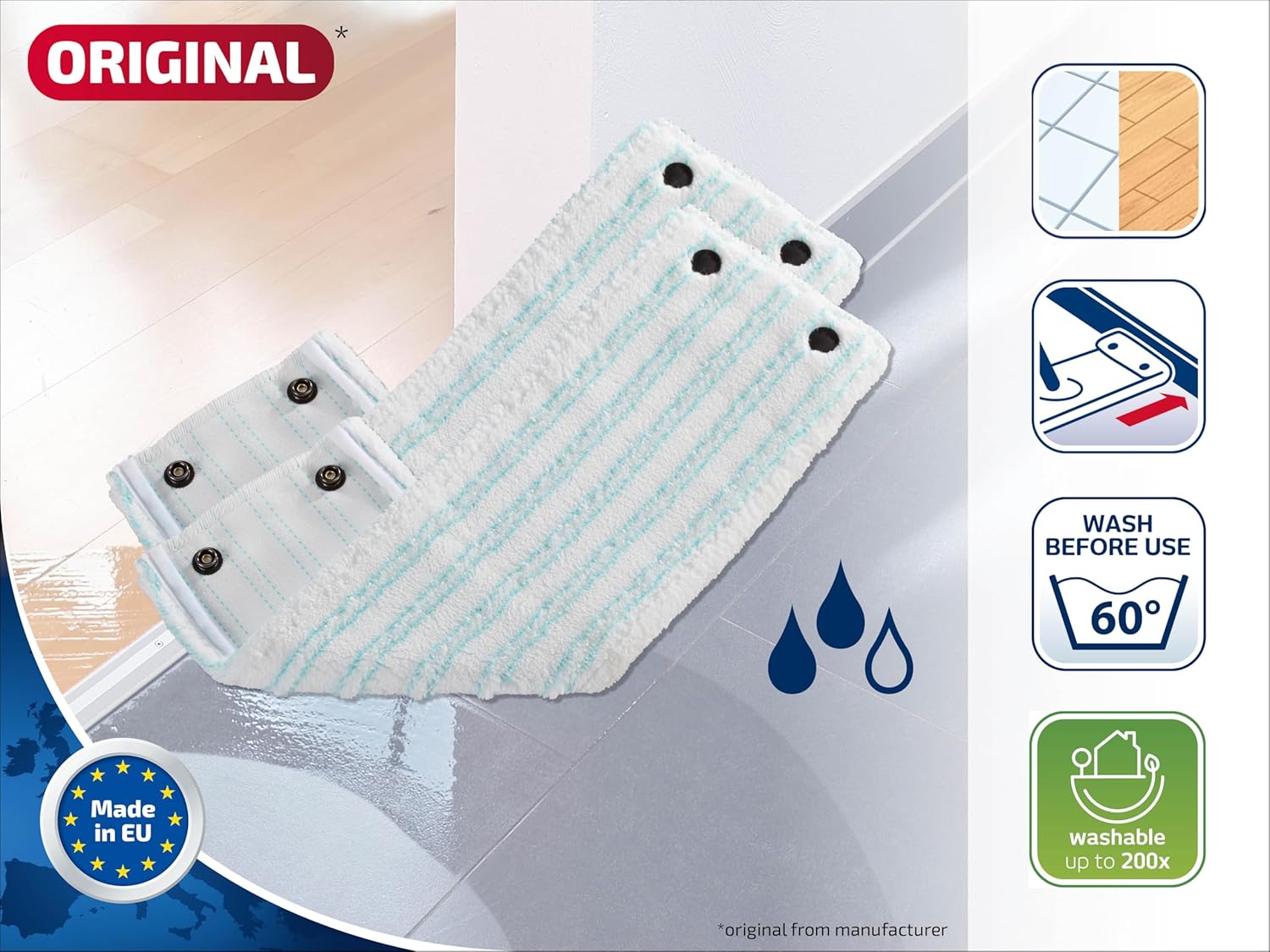 Geeignet für alle glatten Böden - Der Original Leifheit Bodenwischer Ersatzbezug kann in jedem Raum des Hauses eingesetzt werden, vom Badezimmer über das Wohnzimmer bis hin zur Küche