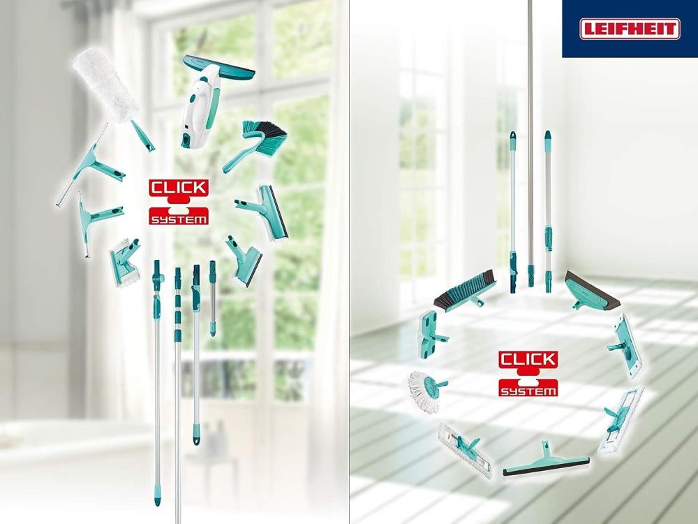 - Click-System - Der Staubbesen verfügt über das patentierte Leifheit Click-System: dank speziellem Aufsatz sind verschiedene Stiele in Kombination mit dem Besenkopf möglich