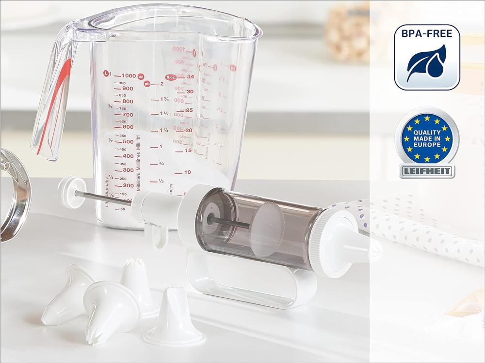 - Lieferumfang - Leifheit Garnierspritze Einhand-Bedienung, inkl. 6 verschiedenen Tüllen, Art. Nr. 3162