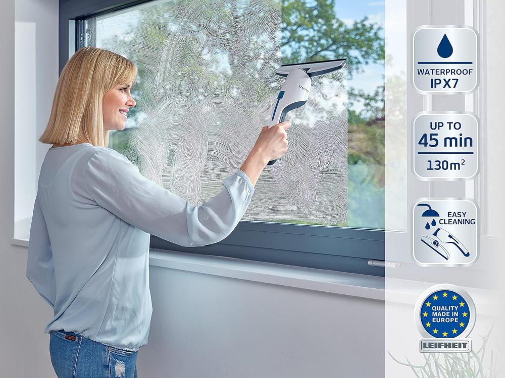 - Wasserdichter Akku-Fenstersauger zur griffbereiten Aufbewahrung in der Dusche geeignet