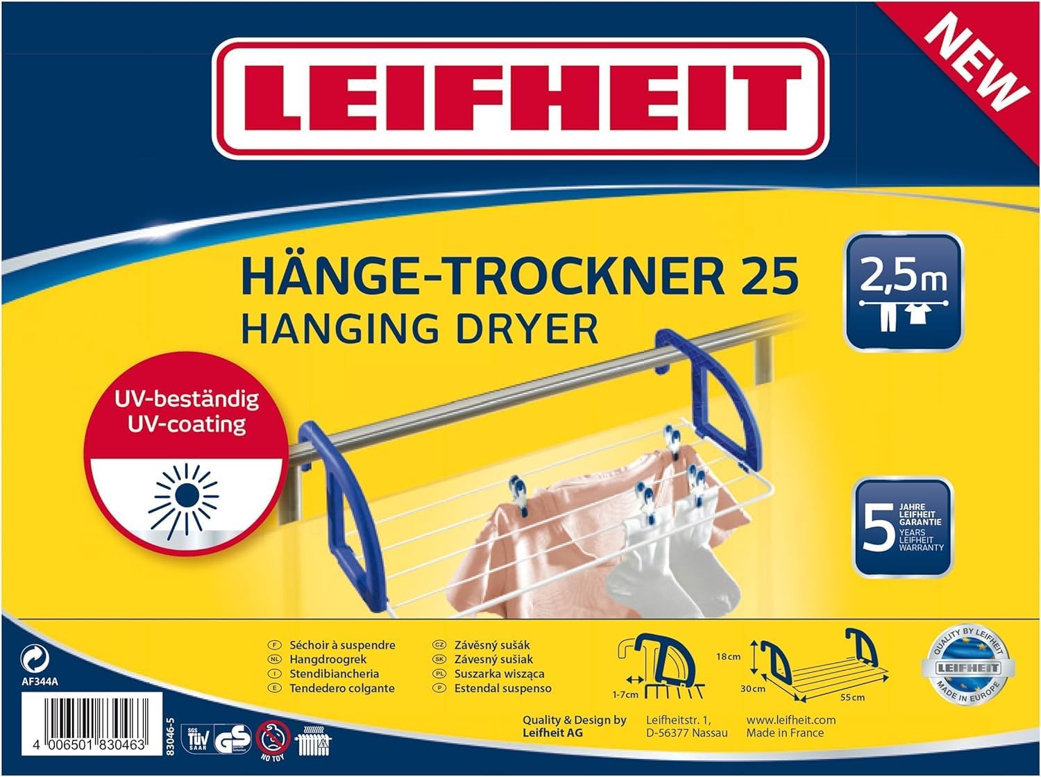 Produktinformationen "Leifheit Hängetrockner Classic 25, Wandtrockner mit 2,5 m Wäscheleine, flexibel einsetzbarer Heizkörpertrockner, Handtuchhalter für das Bad, für Innen und Außenbereich, Balkonwäschetrockner"