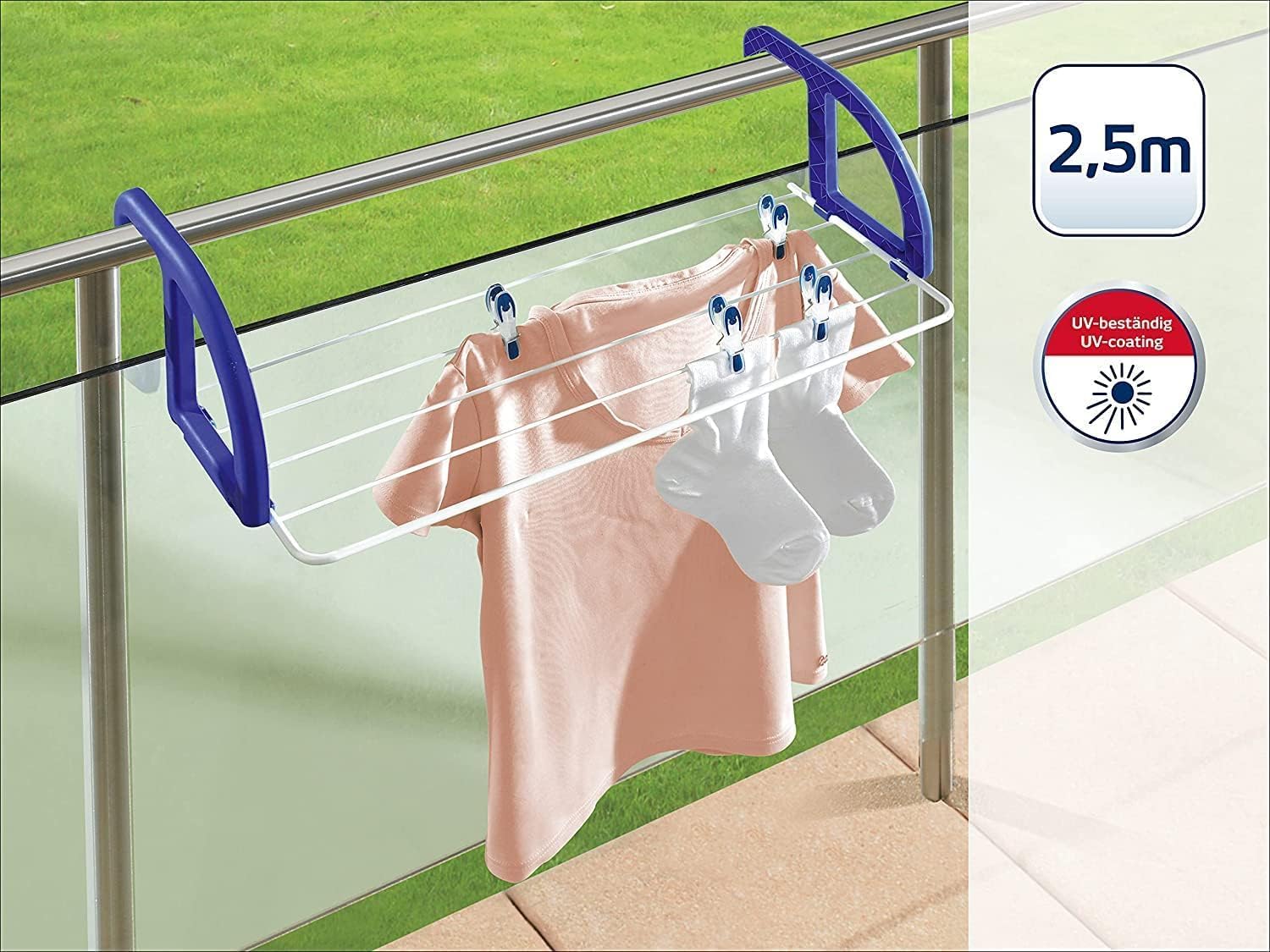 Platzsparende Montage am Balkongeländer zum Trocken oder Auslüften von Wäschestücken
