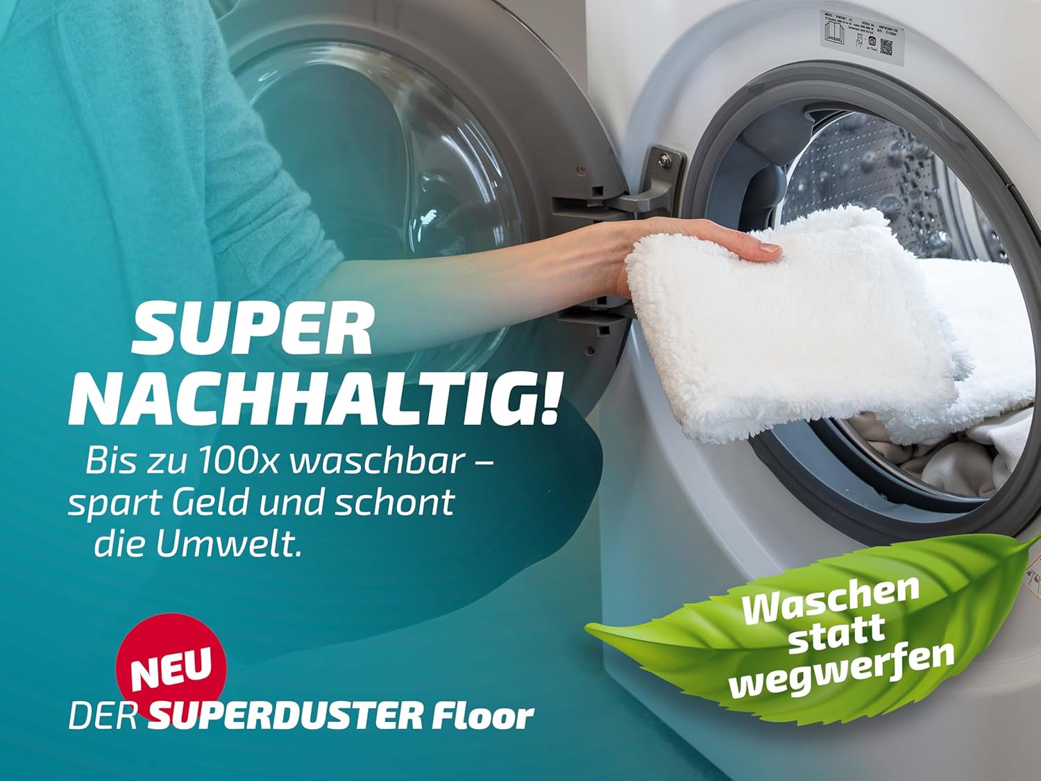 Waschen statt wegwerfen - Bis zu 100-mal bei 40 Grad Celsius kann der Staubmop Bezug gewaschen werden; die Superkraft gegen Staub im Haushalt, die sich gewaschen hat