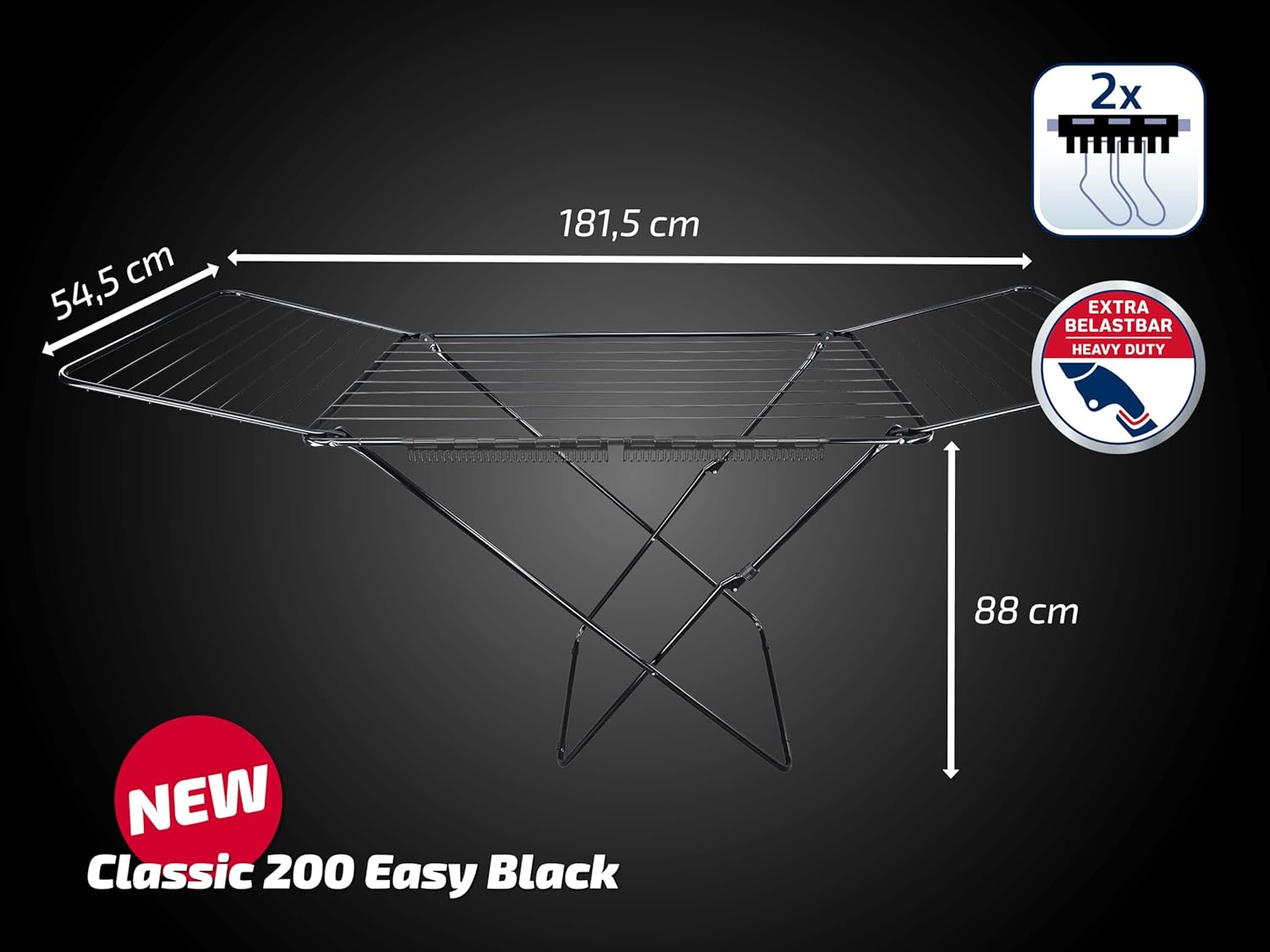 Genügend Platz - Mit seiner 20 Meter Trockenlänge bietet der Ständer ausreichend Platz für ca. 2 Waschmaschinenfüllungen und durch die 98 cm Flügelhöhe finden auch lange Wäschestücke problemlos Platz