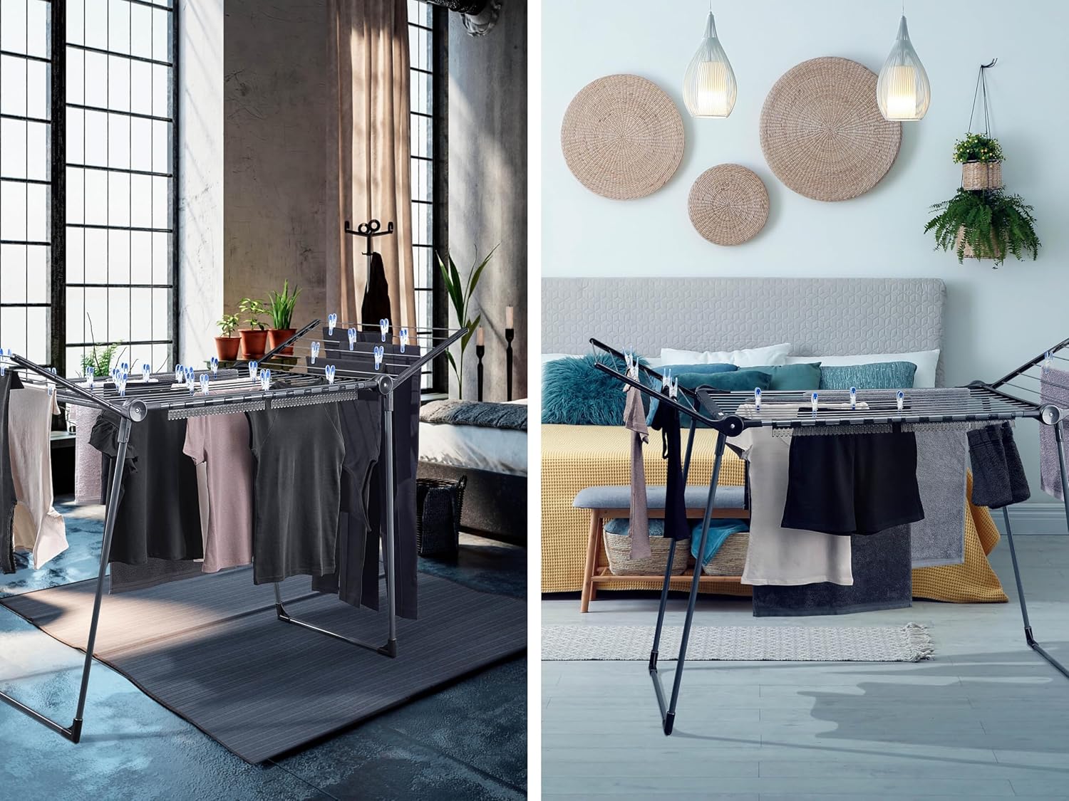 Mit Flügeln - Durch die 1,05 Meter hohen Flügel ist dieses flach verstaubare Wäschegestell ideal zum Trocknen langer Wäschestücke, wie z. B. Hosen oder Badehandtücher
