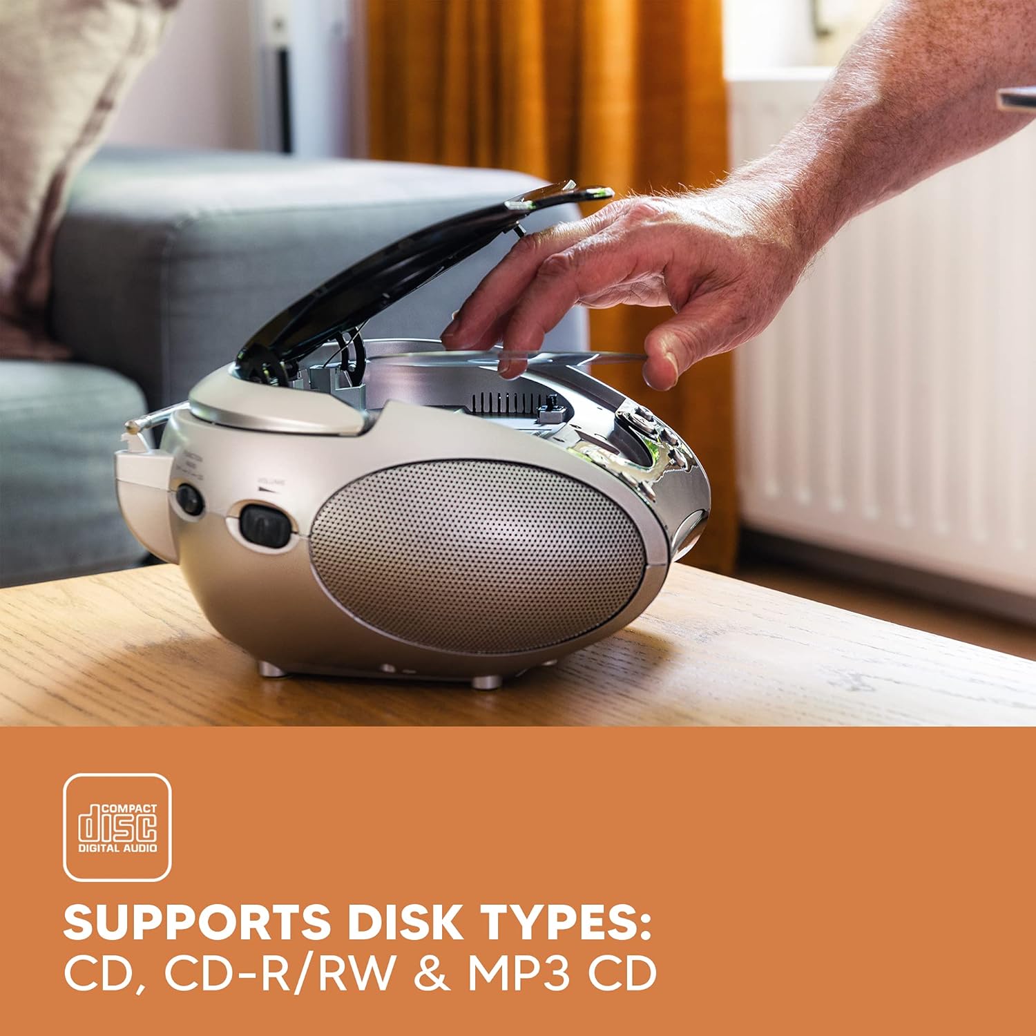 Tragbarer CD-Player: Das SCD-24 Kinderradio ist der ideale musikalische Begleiter. Es ist robust, kompakt und besticht mit seinem kinderfreundlichen Design. Der integrierte CD-Player spielt alle gängigen CD-Formate und das integrierte FM-Radio empfängt verfügbare UKW Radiosender.