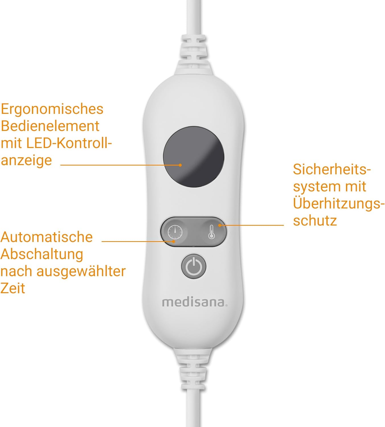 Abschaltautomatik: Der Fußwärmer ist mit einem praktischen LED-Bedienelement sowie einer Abschaltautomatik nach 90 Minuten ausgestattet; Der Überhitzungsschutz rundet die Funktionen ab