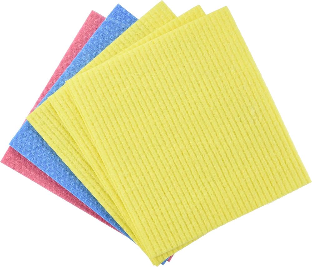 - Im 5er Pack sind Schwammtücher in den Farben Rosa, Gelb und Blau enthalten