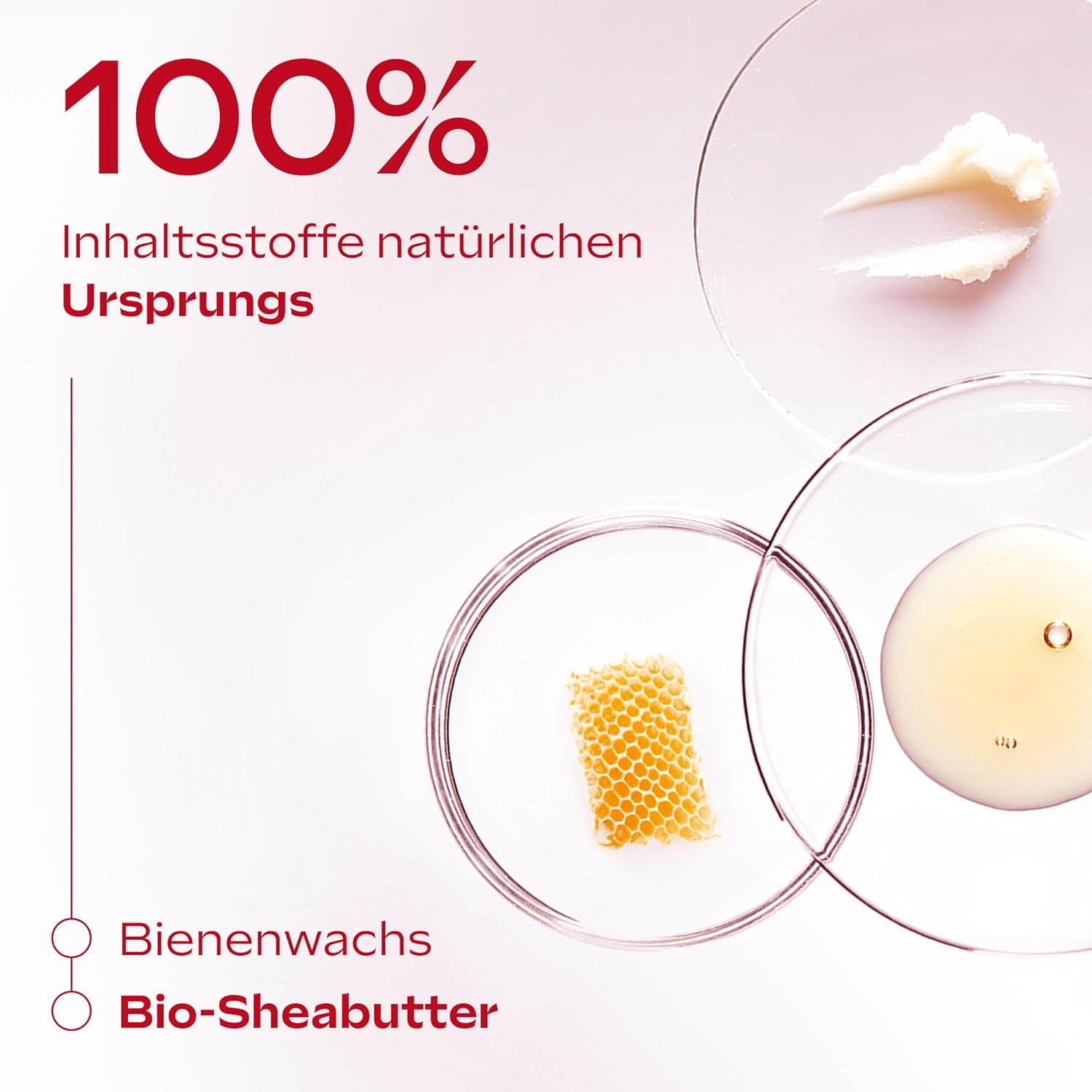 NATÜRLICHE LIPPENPFLEGE: Die wirksame Komposition des Hautpflege Balsams mit Sheabutter, Bienenwachs, Candelilla¬wachs und Jojobaöl unterstützt die natürliche Feuchtigkeitsbalance der Lippen. Der Lip Balm macht raue Lippen wieder geschmeidig und zaubert ein zartes Lächeln auf die Lippen
