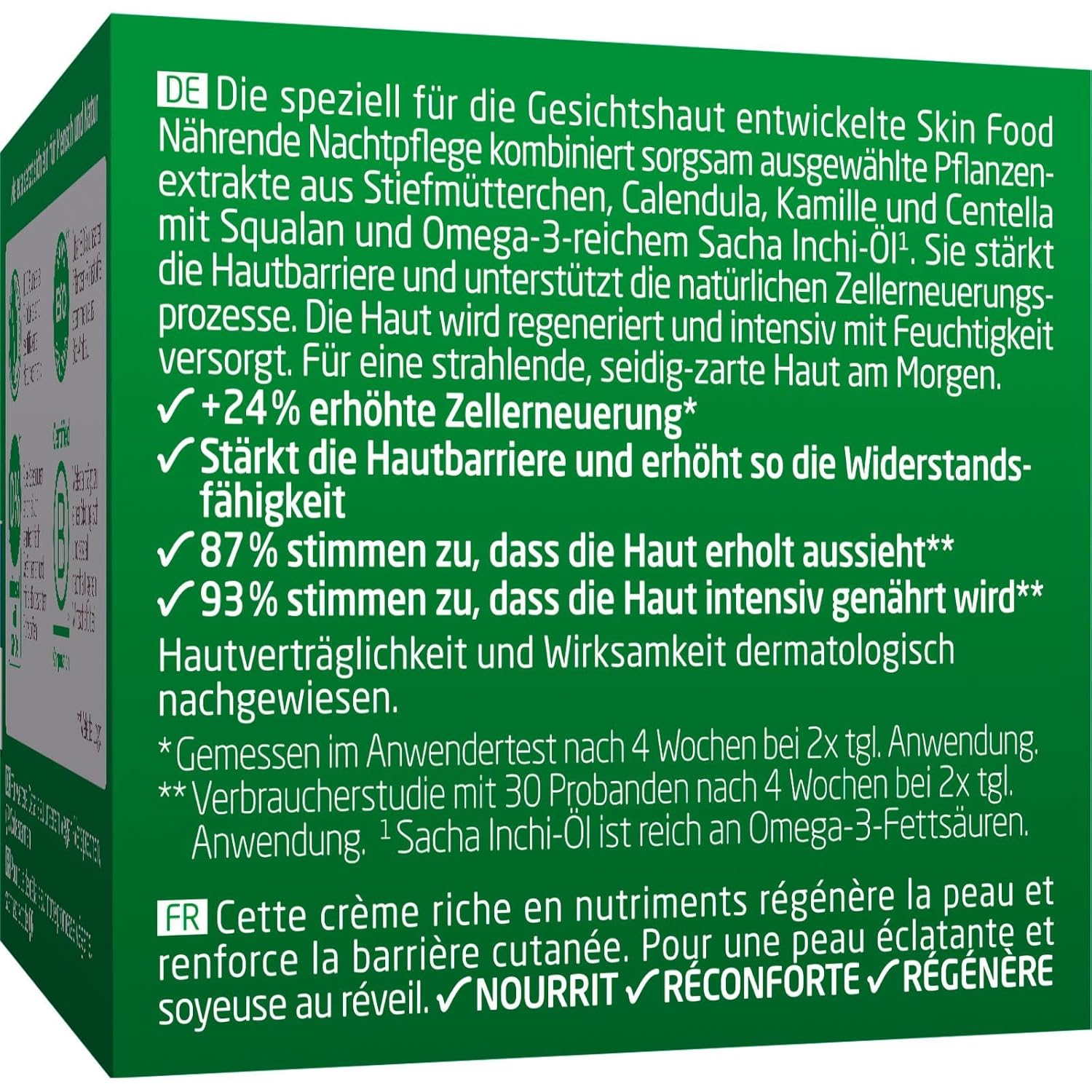 INTENSIVE PFLEGE FÜR DAS GESICHT: Die nährende Skin Food Nachtpflege Regeneration & Stärkung versorgt trockene Haut intensiv mit Feuchtigkeit und schützt sie vor dem Austrocknen. Die Pflegecreme hinterlässt ein angenehmes Hautgefühl und einen angenehmen Duft