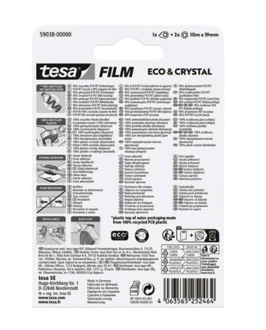 tesafilm ECO & CRYSTAL 2 x Rollen 10m x 19 mm + Abroller